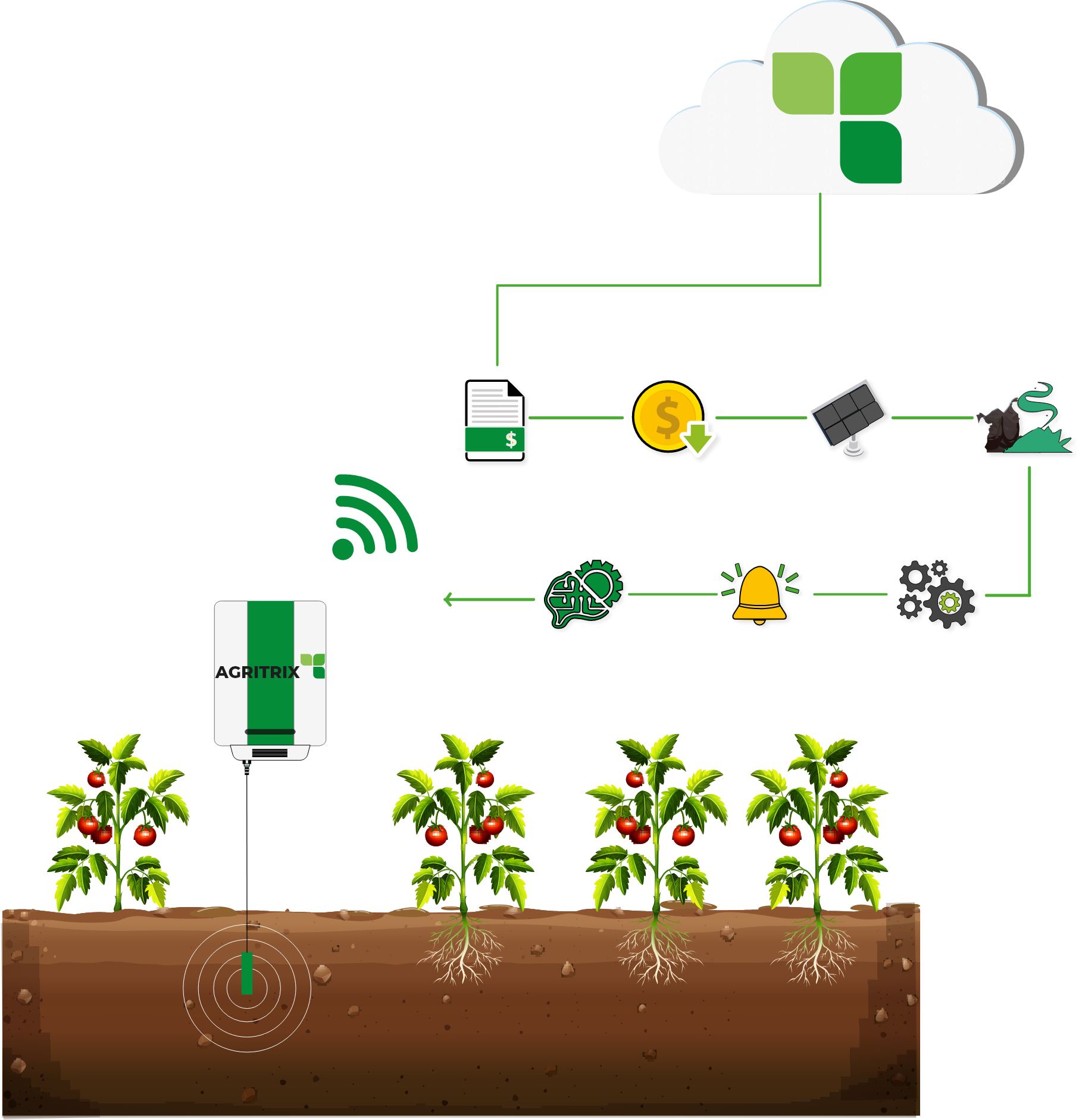 Agritrix optimises resource consumption with smart data and insights. This optimisation spans many agricultural applications, like pesticides, fertilisers, water, energy, food production, yield, produce storage, and even livestock monitoring.